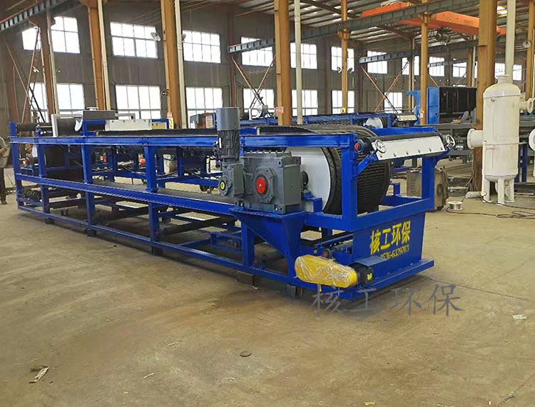 帶式真空過濾機(jī)是以真空負(fù)壓為推動(dòng)力實(shí)現(xiàn)固液分離的設(shè)備,在結(jié)構(gòu)上,過濾區(qū)段沿水平長(zhǎng)度方向布置,可以連續(xù)完成過濾、洗滌、吸干、濾布再生等作業(yè)。設(shè)備具有過濾效率高、生產(chǎn)能力大、洗滌效果好、濾餅水分低、操作靈活,維修費(fèi)用低等優(yōu)點(diǎn)。可廣泛應(yīng)用于冶金、礦山、化工、造紙、食品、制藥、環(huán)保等領(lǐng)域中的固液分離,尤其在煙氣脫硫中的石膏脫水方面(FGD)有良好的應(yīng)用。